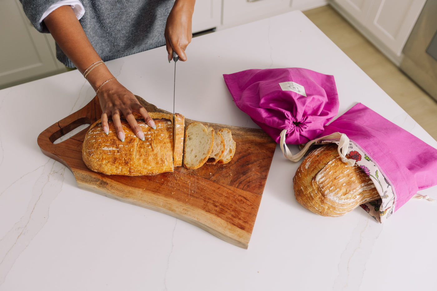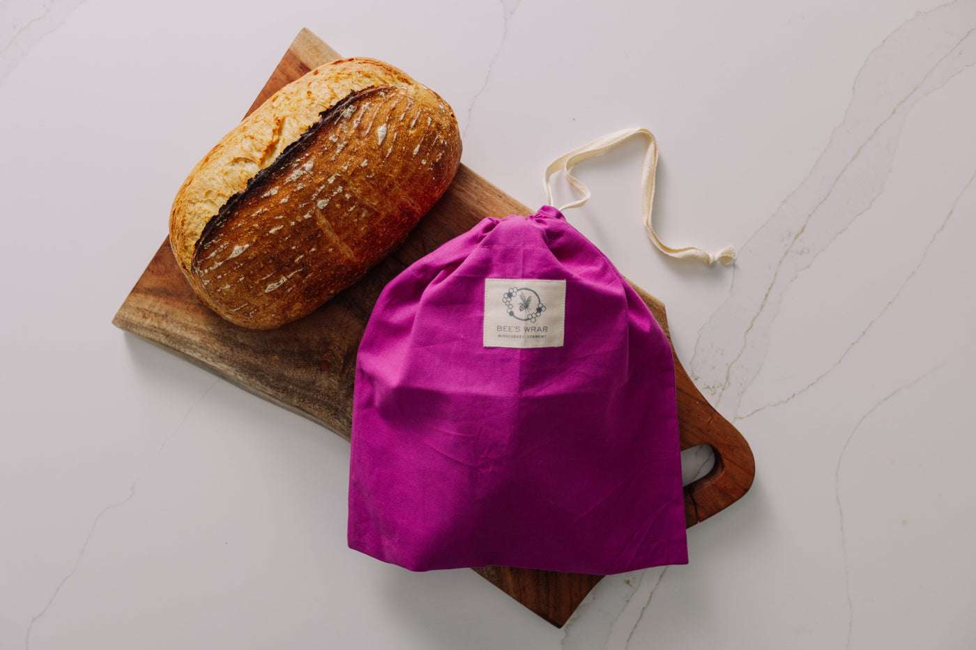 To wash, turn inside out and rinse in cool water. Allow your bread bag to dry, and reuse again and again!