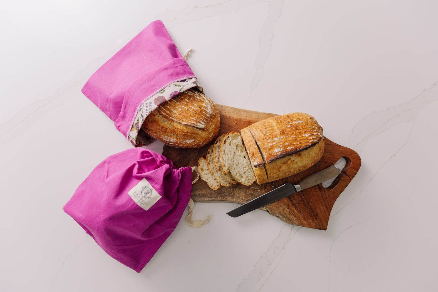 To wash, turn inside out and rinse in cool water. Allow your bread bag to dry, and reuse again and again!
